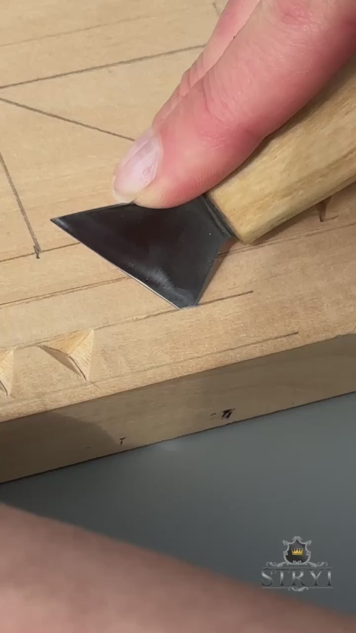 Messer STRYI Profi für Holzschnitzerei 30mm, Kerbschnitzmesser, Schwalbenschwanzmesser, Schnitzmesser, Dreiecksmesser
