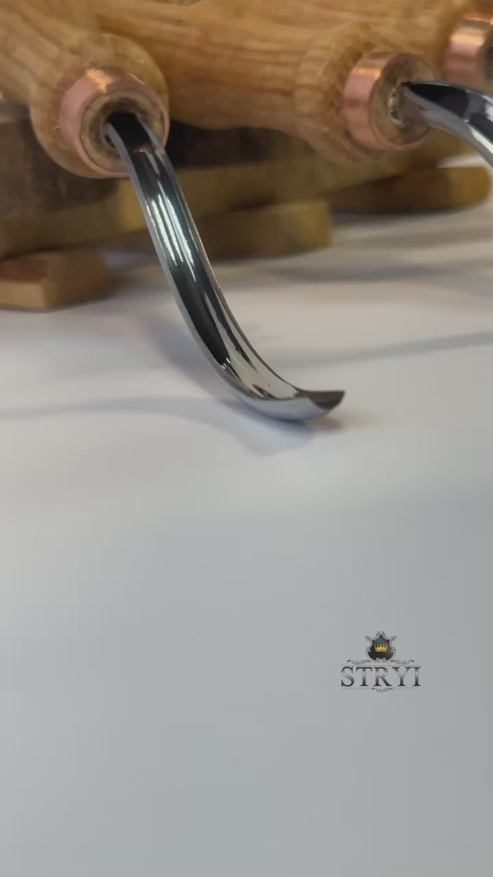 - Large bent chisel for kuksa spoon cutting, STRYI Profi, Chisel for bowl, spoon, kuksa, cup, Tool for deep carving, Forged steel tool, STRYI bent gouge