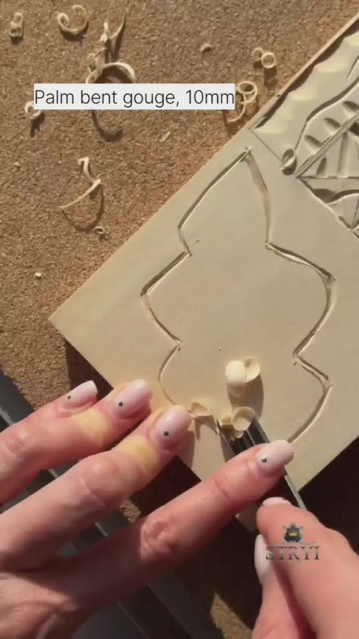 Barrido de gubia doblada para tallado de palma #9 STRYI Profi, herramienta de corte lono, buriles STRYI