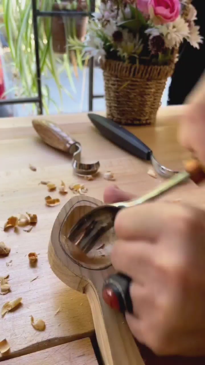 - Spoon carving tool, Hook knife 35mm double-sided cutting edge STRYI Profi, Spoon knife
