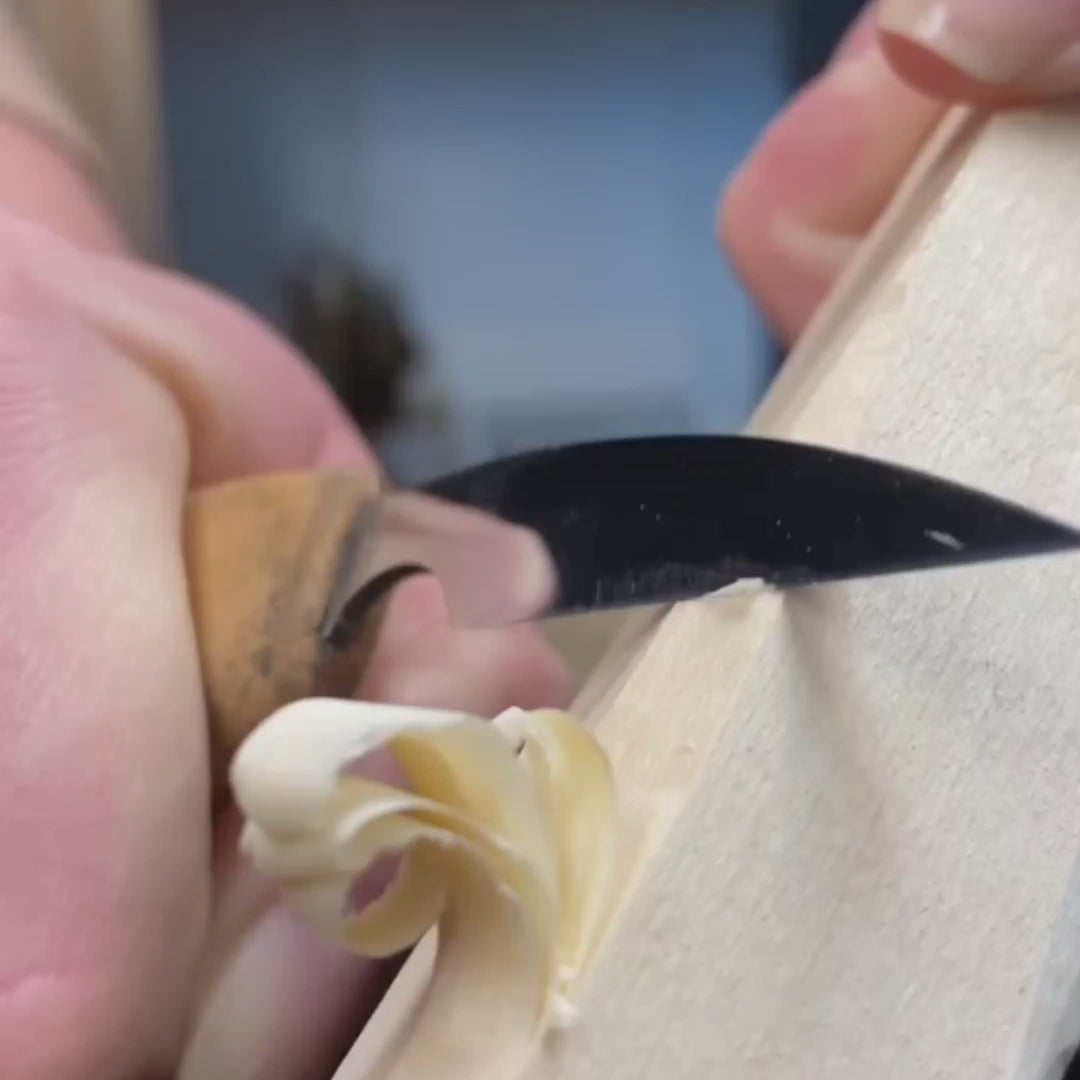 It is a staple in any woodcarver's toolkit and excels in various tasks, including creating intricate chip patterns and fine detailing in whittling figures. This thin knife can make hollows and perform cleanups on backgrounds, making it an indispensable tool for both beginners and seasoned carvers. The knife's design ensures both functionality and ease of use, enhancing the carving experience.