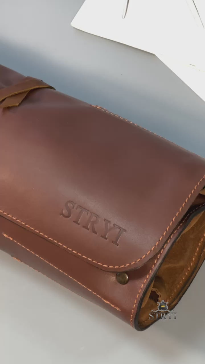 Genuine Leather Storage Roll-case personalizated for storage carving tools, Gift for carver