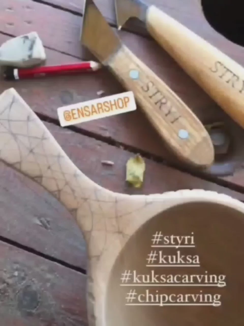 This model combines different purposes in carving: сutting through contours in relief carving, making chip patterns, and straight planing of wood. It is very popular for decorating spoons, kuksas, candle sticks, bags, vases, bowls, and other wooden items.