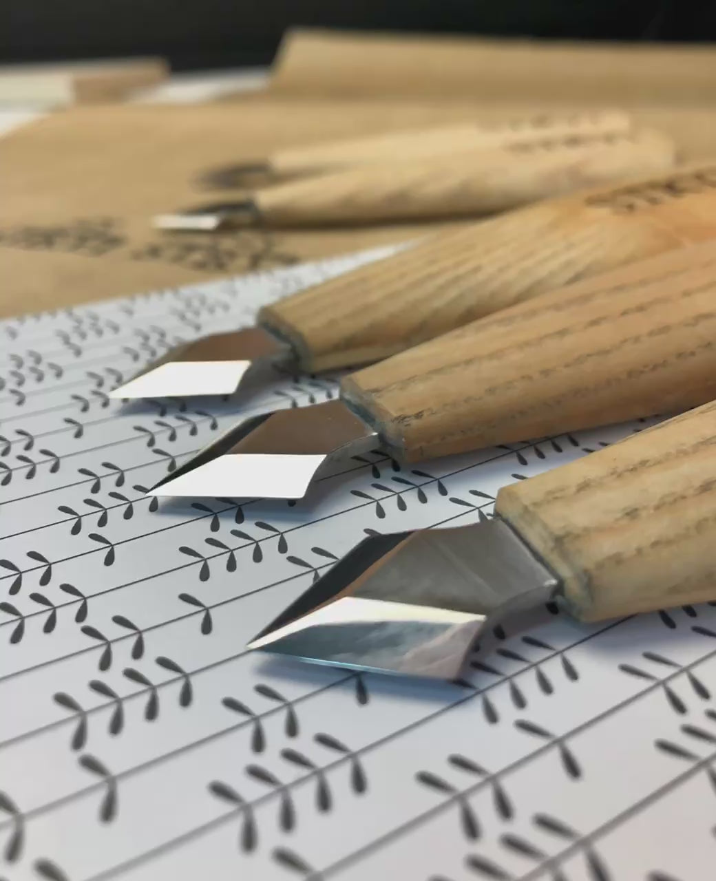 Anna Hermsdorf: If you ask me which three carving tools areindispensable to me, these are them.The right tool is v-shaped and from a Ukrainian company...